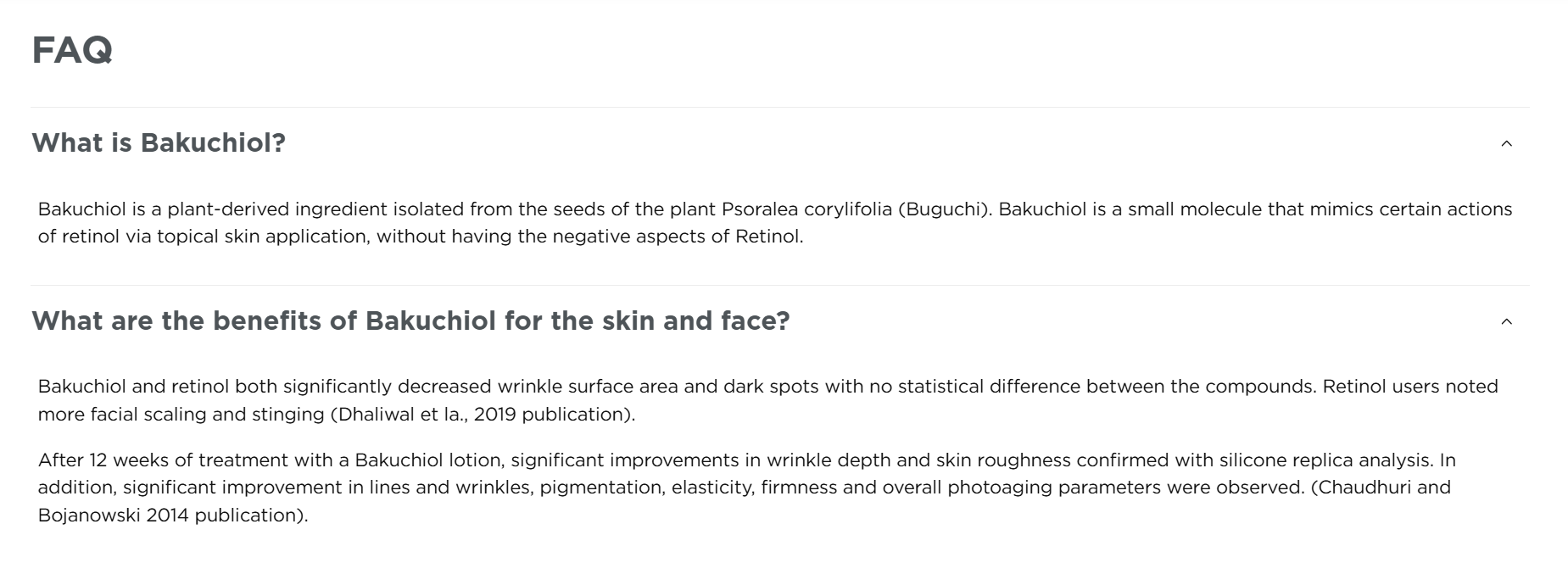 I helped create a new ingredient glossary organized a-z for all of NEOSTRATA’s ingredients. I worked with regulatory teams and an SEO agency to create approved ingredients descriptions and FAQs that were highly searchable. You can view the whole glossary here